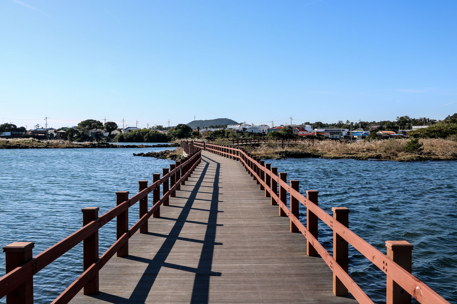 제주올레 2코스 여행은 섬의 울퉁불퉁한 해안선을 따라 구불구불하게 이어지는 매혹적인 해안길로 시작됩니다. 광치기 해변을 시작으로 식산봉을 내려와 둘레길을 따라 걸으면 족지물이 보이는데 과거에는 목욕탕처럼 씻는 용도였지만 지금은 잠시 더위를 식히는 쉼터로 이용되고 있습니다. 길은 예스러운 어촌 마을을 통과하며 전통적인 제주 생활 방식을 엿볼 수 있습니다.