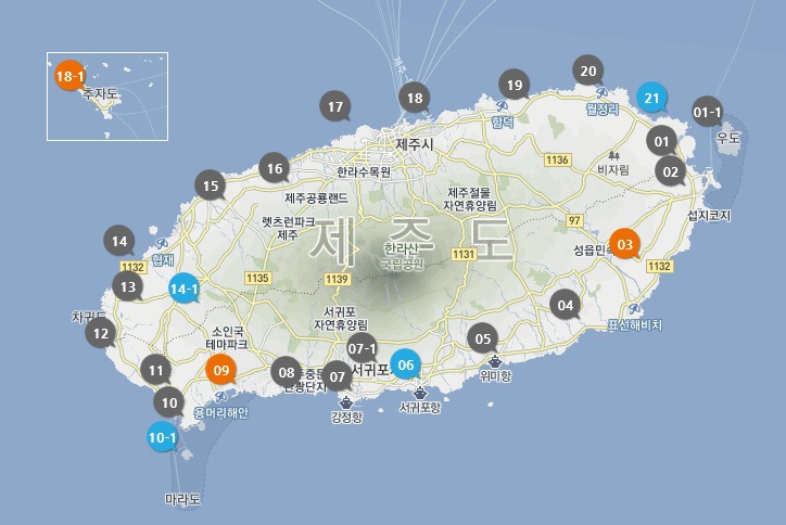하이라이트 중 하나는 한국의 최고봉인 한라산이 있는 한라산 국립공원입니다. 정상으로 향하는 트레일은 섬의 탁 트인 전망을 감상하면서 도전적이면서도 보람 있는 하이킹을 제공합니다. 이곳의 풍경은 엽서에 나올 만큼 완벽하므로 카메라를 꼭 챙기세요.
